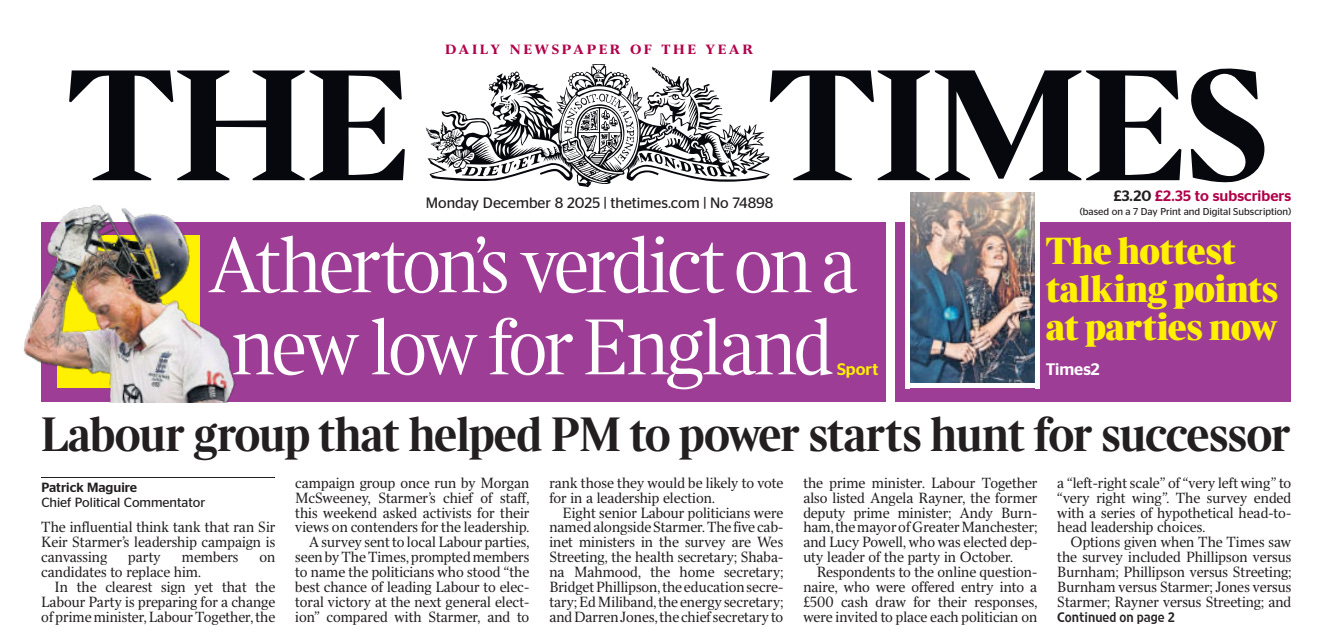 On the front page of today’s Times – get yourself a subscription to read the story in full – I uncover yet more evidence that the Labour Party is preparing for life after this prime minister. Here’s the top line.